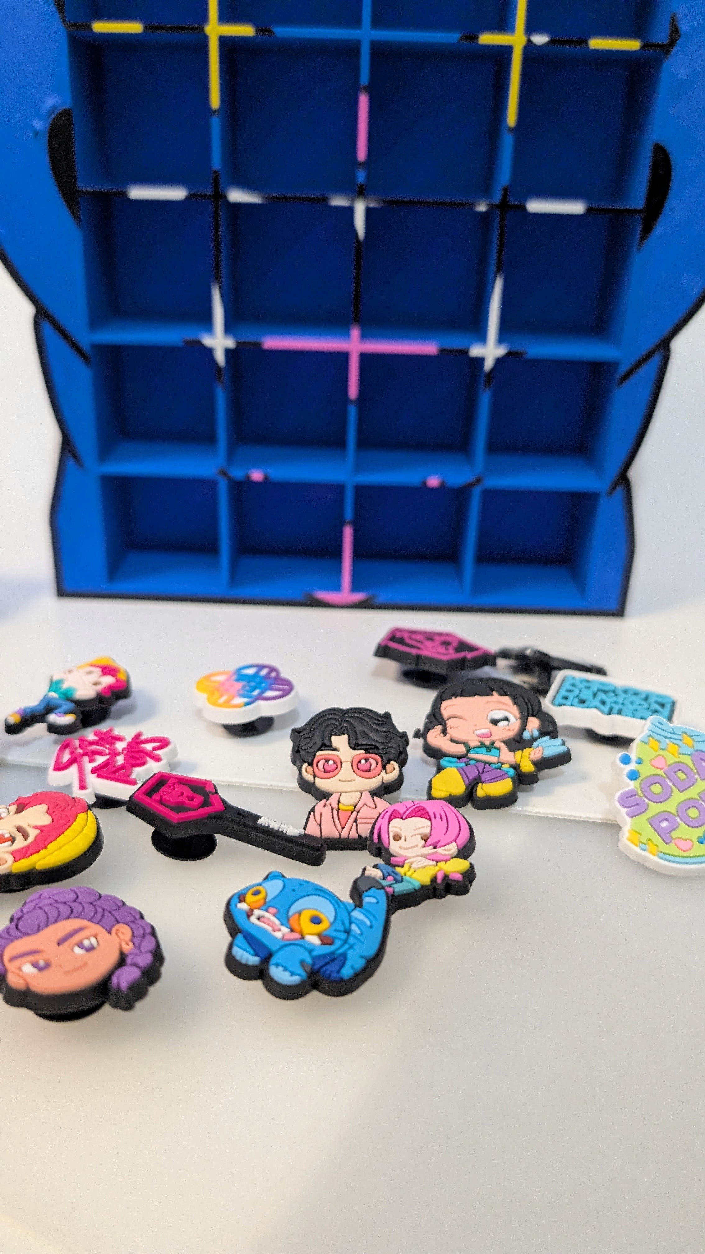 24 sorpresas de las KPop Demon Hunters. 24 charms diferentes para tus zapatillas. Y si no tienes zapatillas, ¡no te preocupes! Te regalamos unos llaveros flexibles para que puedas llevar a tus guerreras favoritas donde tú quieras.